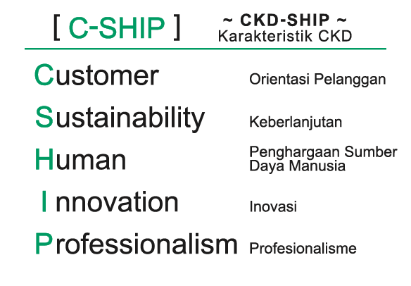 Nilai adalah 5 pandangan yang dijunjung oleh setiap karyawan CKD Group guna mewujudkan Tujuan.